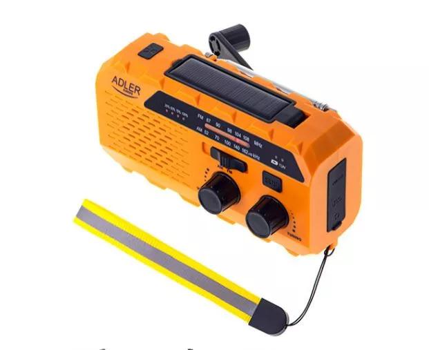 Adler AD1197 akkumulátors táska rádió, led világítással, powerbank funkcióval, manuálisan, napfénnyel, usb vel tölthető