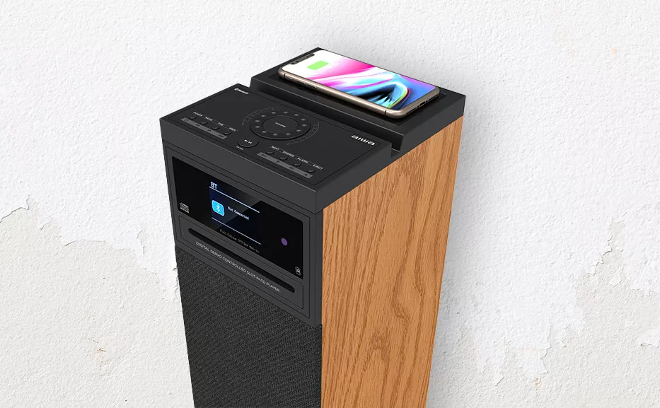 A TSBT-360 nem csak hangszóró: CD lejátszást és FM PLL rádiót is támogat 50 előre beállítható állomással, valamint egy praktikus két ébresztéses rendszerrel is rendelkezik. A tetején található vezeték nélküli töltőpad révén egyszerűen feltöltheted eszközeidet anélkül, hogy kábelek zavarnának.