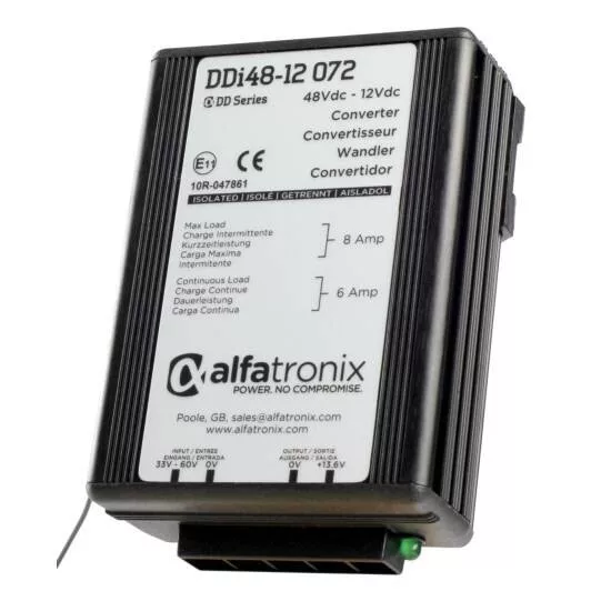 Az Alfatronix DDi 48-24 072 48Vdc-24Vdc feszültség átalakító 3A megbízható áramellátást biztosít 48V DC bemenetről 24V DC kimenetre. Kompakt mérete és tartós kivitele ideálissá teszi speciális járművek és ipari alkalmazások energiaellátásához.