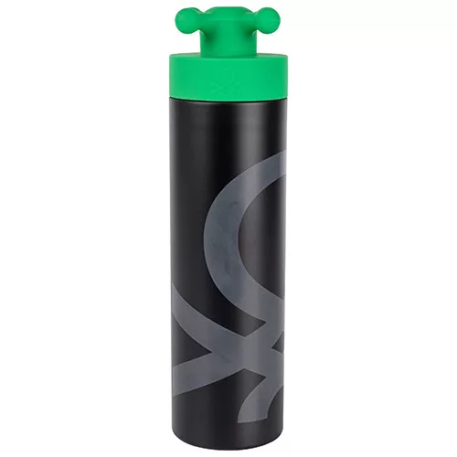 BENETTON DUPLA FALU INKOX TERMOSZ 500ML Dupla falu alumínium palack, amely sokáig hidegen vagy melegen tartja a folyadékot. Kiömlésgátló, és szivárgásmentes csavaros kupakkal.