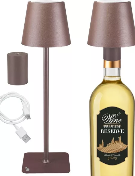 Asztali lámpa érintőkapcsolóval. Egyszerű érintéssel választhat meleg, hideg, vagy természetes fény között. A fény intenzitása a bekapcsoló gomb nyomva tartásával állítható. Vízálló, beltéren és kültéren is használható. Az erős akkumulátor körülbelül 10 órán át folyamatos működést biztosít. Az adapterrel a 33mm-es nyílásu üvegek nyakába helyezhető a lámpa test