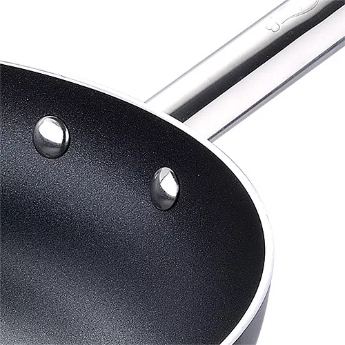 Anyaga préselt alumínium ami gyorsan felmelegszik, így időt és pézt takaríthat meg. Könnyű súlya miatt kényelmes a használata. Minden főzőfelületen használható (indukciós tűzhelyen is). Multiclad tapadásmentes bevonattal, acél fogantyúval és akasztófüllel.