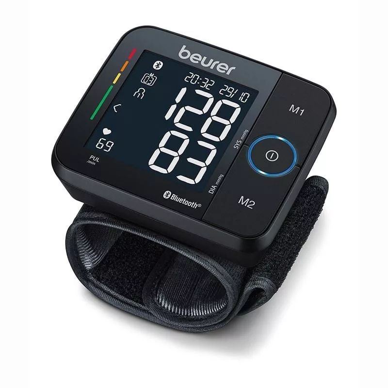 Inflation Technology: Gyors és kényelmes mérés már a felpumpálás alatt Kockázatjelző: A mérési eredmények besorolása színes skála segítségével Áttekinthető, jól leolvasható fekete kijelző Teljesen automatikus vérnyomás- és pulzusmérés a csuklón Automatikus mérés a felpumpálás alatt: a gyors és kényelmes mérésért Mérési értékek vezeték nélküli átvitele Az összes tárolt mérési érték átlaga Az utolsó 7 nap reggeli és esti vérnyomásának átlaga Tökéletesen olvasható fekete kijelző Kettő felhasználói memória egyenként 60 mérési értékhez Kockázatjelző Arrhythmia felismerése Gyógyászati termék 13,5–21,5 cm kerületű csuklóhoz Dátum és idő / kikapcsoló automatika Üzenet hibás alkalmazás esetén Elemcsere kijelzése Tárolódoboz Tápellátás: 2 x 1,5 V AAA elemmel Ingyenesen letölthető „beurer HealthManager” alkalmazás. Kompatibilis iOS 10.0-tól és Android™ 5.0-tól, Bluetooth® 4.0-tól