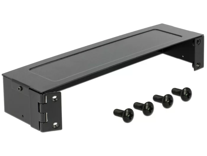 "Leírás Ez a Delock által gyártott állvány egy 10" patch panel falra szerelésére használható, egy magassági egységgel (U) és legfeljebb 7 cm mélységgel. Az egyoldali zsanér megkönnyíti a könnyű szerelést; egy fedél véd a portól, és hasznos helyként is használható. Műszaki adatok - 10"-os készülékek szereléséhez 1 U-val (max. 7 cm mélység) - Csuklóval - Fedőlappal - Fém tokkal - Szín: fekete - Méretek (HxSxM): kb. 26,4 x 7,6 x 4,4 cm A csomag tartalma - 10" falra szerelhető állvány - Fedél 2 csavarral - 4 állványcsavar Csomag - Fehér doboz"