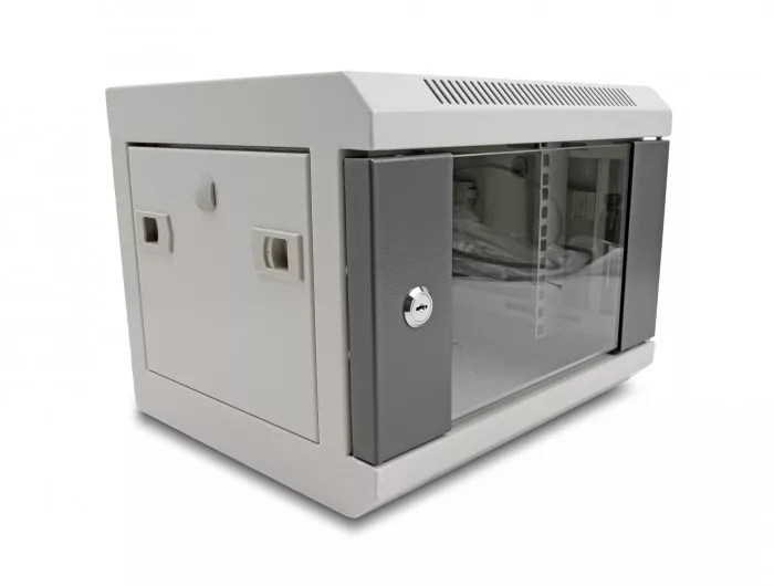 Leírás Ez a Delock hálózati szekrény használható állítva vagy falra szerelve és ideális 10 colos eszközök, például patch panelek beépítésére. Az eszközök könnyű elérése A mozgatható oldal panelek lehetővé teszik a hálózati szekrény hátsó részében lévő beépített eszközök gyors és könnyű elérését. Az elülső ajtó zárható és áttetsző ablakkal rendelkezik A hálózati szekrény bezárható így nagyobb biztonságot nyújt. Az áttetsző ablak lehetővé teszi a hálózati szekrény belsejének megtekintését bármikor. Optimális szellőztetési rendszer A beépített szellőző nyílások a felső borító lapon biztosítják a megfelelő szellőztetését a beépített eszközöknek. Műszaki adatok 10 hálózati szekrény állítható vagy falra szerelhető, 4U 2 profilsín elöl Ajtósarok választható és változtatható (bal vagy jobb) Kábelrendező és átjáró lehetséges alul és felül is fedőkkel Elülső ajtó biztonsági üveggel és zárható Leszerelhető oldalpanelek Szellőző nyílások légáramlat biztosítására Szerelési mélység: max. 240 mm Töltési kapacitás: max. 40 kg Tömeg: kb. 6 kg Szín: szürke Anyaga: fém Méretek (HxSzxM): kb. 350 x 280 x 255 mm A csomag tartalma Hálózati szekrény 2 x kulcs 20 x csavar M6 20 x alátét 20 x rögzítő anyacsavar Csomag Doboz