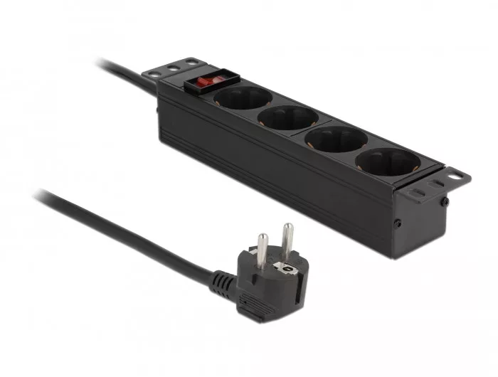 Ez a Delock 4 csatlakozós hosszabbító csatlakoztatható egy 10 hálózati kabinetbe vagy fali konnektorba és alkalmas különböző eszközök rákapcsolására.