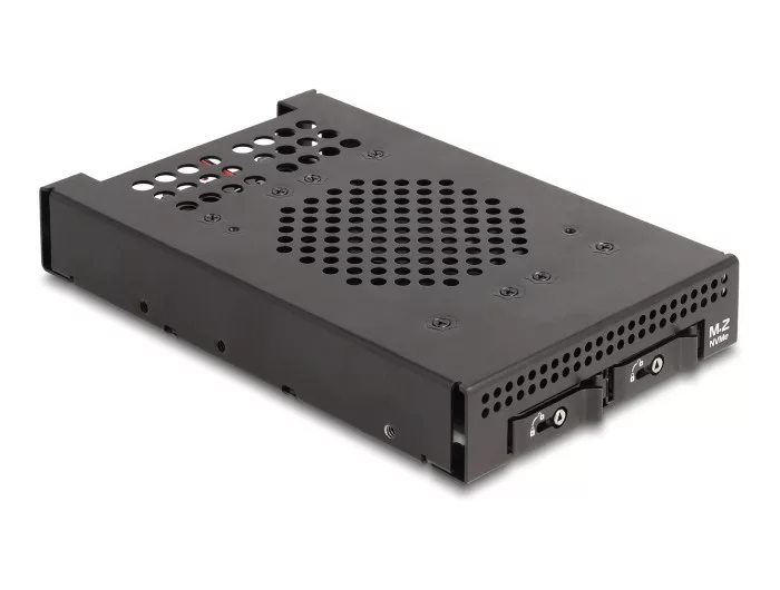Leírás Ez a Delock szolid fém mobil állványbeépíthető egy 3,5 colos mélyedésébe egy személyi számítógépnek és biztosít két M.2 csatlakozási felületet 2280, 2260, 2242 vagy 2230 formátumban. A SSD gyors cseréje A speciális mechanizmusnak köszönhetően a SSD gyorsan és könnyen cserélhetők. Például az adatok biztonsági mentése kivehető és biztonságos helyen tárolható. Tálca kulcs zárakkal és rugókkal A mobil rack kulcszárral van ellátva, ami megakadályozza az illetéktelen hozzáférést. A fém stabil hordozó rendelkezik rugókkal a tetején és az alján, amely csökkenti a rezgést és így támogatja a mobil eszközöket. Megjegyzés Különös figyelmet kell fordítani hogy a sín tökéletesen csatlakoztatva van, különben az SSD-hez nem létesíthető kapcsolat. Műszaki adatok Csatlakozó: Mobil keret: belső: 2 x M.2 M-kulcs nyílás külső: 2 x OCuLink SFF-8612 hüvely 2 x 4 tűs Floppy apa csatlakozó 2 x 2 tűs csatlakozósor a hűtéshez M.2 tálca: 1 x M.2 M-kulcs dugó 1 x M.2 M-kulcs nyílás A PCI Express 4.0 szabvánnyal kompatibilis Csatolófelület: PCIe / NVMe M.2 modulok használatát támogatja 2280, 2260, 2242 és 2230 formátumban PCIe alapú M- vagy B+M-kulccsal Az összetevők maximális magassága a modulon: A kétoldalas összeszerelt modulok 1,5 mm-es alkalmazása támogatott 1 db hűtőventillátor 2 x LED kijelző Indítható, UEFI 2.3.1 támogatással rendelkezik M.2 tálca fémből Támogatja a NVM Express (NVMe) használatát Támogatja a S.M.A.R.T. használatát Kulcsos zár Méretek (HxSzxM): kb. 159 x 100 x 25 mm Rendszerkövetelmények Linux Kernel 6.2 vagy újabb Windows 10/10-64/11 Windows Server 2022 PC 1 db szabad 3.5 -es bővítőhellyel Egy szabad OCuLink port minden egyes M.2 csatlakozási felülethez Tápegység szabad SATA tápcsatlakozóval A csomag tartalma 3.5 Mobil keret 2 x M.2 tálca kábel SATA 15 tűs - 2 x 4 tűs Floppy anya, hossza kb. 12 cm 2 x kulcs 4 x csavar I 6,0 x 5,0 mm, fej 8,0 mm 2 x csavar IM 2,0 x 4,0 mm, fej 5,0 mm Használati utasítás Csomag Doboz