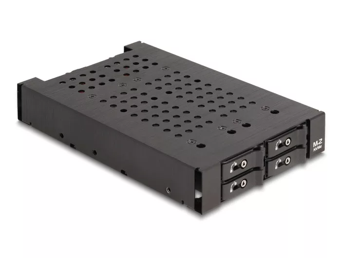 Leírás Ez a Delock szolid fém mobil állványbeépíthető egy 3,5 colos mélyedésébe egy személyi számítógépnek és biztosít négy M.2 csatlakozási felületet 2280, 2260, 2242 vagy 2230 formátumban. A SSD gyors cseréje A speciális mechanizmusnak köszönhetően a SSD gyorsan és könnyen cserélhetők. Például az adatok biztonsági mentése kivehető és biztonságos helyen tárolható. Tálca kulcs zárakkal és rugókkal A mobil rack kulcszárral van ellátva, ami megakadályozza az illetéktelen hozzáférést. A fém stabil hordozó rendelkezik rugókkal a tetején és az alján, amely csökkenti a rezgést és így támogatja a mobil eszközöket. Megjegyzés Különös figyelmet kell fordítani hogy a sín tökéletesen csatlakoztatva van, különben az SSD-hez nem létesíthető kapcsolat. Műszaki adatok Csatlakozó: Mobil keret: belső: 4 x M.2 M-kulcs nyílás külső: 4 x OCuLink SFF-8612 hüvely 4 x 4 tűs Floppy apa csatlakozó 4 x 2 tűs csatlakozósor a hűtéshez M.2 tálca: 1 x M.2 M-kulcs dugó 1 x M.2 M-kulcs nyílás A PCI Express 4.0 szabvánnyal kompatibilis Csatolófelület: PCIe / NVMe M.2 modulok használatát támogatja 2280, 2260, 2242 és 2230 formátumban PCIe alapú M- vagy B+M-kulccsal Az összetevők maximális magassága a modulon: A kétoldalas összeszerelt modulok 1,5 mm-es alkalmazása támogatott 4 x LED jelzőfény Indítható, UEFI 2.3.1 támogatással rendelkezik M.2 tálca fémből Támogatja a NVM Express (NVMe) használatát Támogatja a S.M.A.R.T. használatát Kulcsos zár Méretek (HxSzxM): kb. 159 x 100 x 25 mm Rendszerkövetelmények Linux Kernel 6.2 vagy újabb Windows 10/10-64/11 Windows Server 2022 PC 1 db szabad 3.5 -es bővítőhellyel Egy szabad OCuLink port minden egyes M.2 csatlakozási felülethez Tápegység szabad SATA tápcsatlakozóval A csomag tartalma 3.5 Mobil keret 4 x M.2 tálca 2 x kábel SATA 15 tűs - 2 x 4 tűs Floppy anya, hossza kb. 12 cm 2 x kulcs 4 x csavar I 6,0 x 5,0 mm, fej 8,0 mm 4 x csavar IM 2,0 x 4,0 mm, fej 5,0 mm Használati utasítás Csomag Doboz