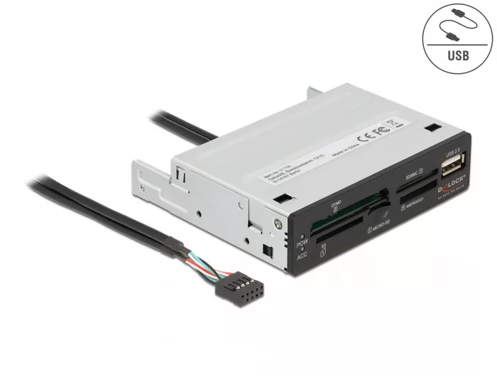 Leírás Ez a Delock kártyaolvasó egy 3,5 hüvelykes PC-rekeszbe telepíthető, és egy belső USB 2.0 tűs fejléchez csatlakoztatható. Ötnyílású kártyaolvasóval rendelkezik , és egy USB-eszköz csatlakoztatását teszi lehetővé. Leírás Csatlakozók: külső: 1 x CF foglalat 1 x SD / MMC foglalat 1 x xD foglalat 1 x Micro SD bővítőhely 1 x MS bővítőhely 1 x USB 2.0 Type-A anya belső: 1 x 9 tűs USB 2.0 tűs fejléc aljzat Lapkakészlet: Realtek RTS5130 Fém ház 3,5 hüvelykes rekeszbe szereléshez Adatátviteli sebesség akár 480 Mbps fejléc anyakábel kb. 53 cm (csatlakozóval együtt) Hot Swap, Plug & Play A következő memóriakártyákat támogatja: 1. nyílás CF I, CF II, CF4.0, CF Ultra, CF Ultra DMA, CF Ultra II, CF Ultra III, CF Ultra IV, CF Extreme, CF Extreme III, CF Extreme IV, Microdrive, MagicStor Slot 2 SD, SD Pro, SD Ultra, SD nagy kapacitású (SDHC), Turbo-SD, SDHC Turbo, SD Ultra, SD Ultra II, SDHC Ultra, SDXC, SDXC Ultra, MMC-I, MMC-II, MMC plus, MMC plus Turbo, MMC 4.0, Mini SD*, Mini SDHC*, Turbo Mini SD*, MMCmobile*, RS-MMC*, RS-MMC 4.0* Slot 3 xD, xD type M, xD type H Slot 4 Micro SD, Micro SDHC, Micro SDHC Ultra, T -Flash, MMCmicro Slot 5 MS Micro, MS-Pro Micro, MS-HG Micro, MS XC-HG Micro, M2 *Adapter szükséges Rendszerkövetelmények Linux Kernel 5.11 vagy újabb Windows 8.1/8.1-64/10/10-64/11 PC egy szabad 3,5 hüvelykes rekesszel Alaplap ingyenes 9 tűs USB 2.0 tűs fejléccel A csomag tartalma 3,5 -os kártyaolvasó csatlakozókábellel Csavarok Felhasználói kézikönyv Csomag Kiskereskedelmi doboz