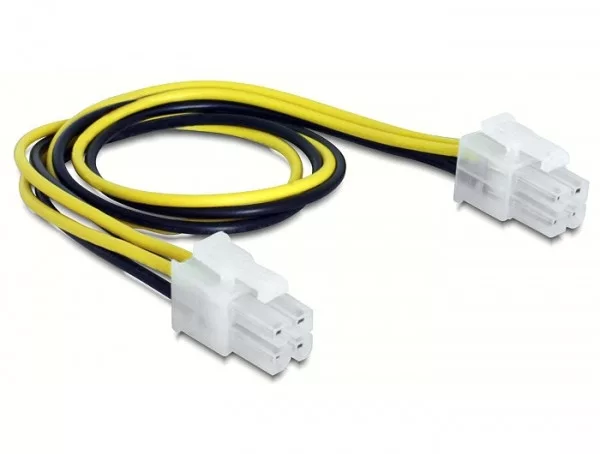 A Delock 4 tűs kábele DC-DC átalakítóval együtt használható egy alaplap kiegészítő tápellátásához.