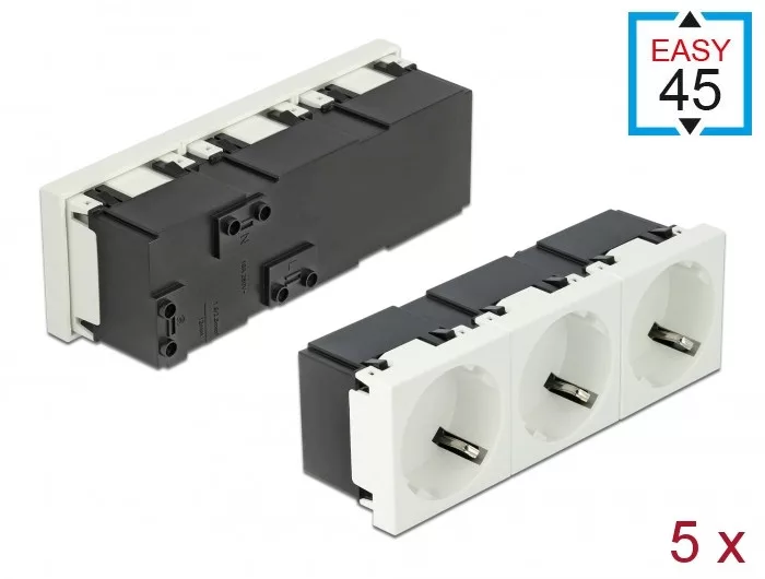 Ez a Delock hálózati csatlakozóaljzat három CEE 7/3 áram kapcsolat biztosítására tervezett termék. Az egyszerű bedugó mechanizmusának köszönhetően a modul biztosan a helyén van, és könnyen el is távolítható, amennyiben szükség van arra.
