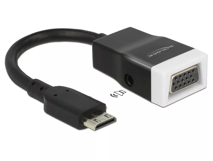 Ez az adapter lehetővé teszi, hogy például egy VGA-monitort csatlakoztasson egy szabad HDMI-mini C-csatolón keresztül. Ezenkívül egy audiokábelt csatlakoztathat a sztereó aljzat csatlakozóhüvelyébe az audiofunkció használatához.