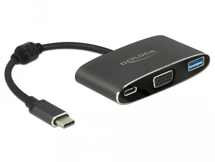 Ez a Delock adapter lehetové teszi, hogy VGA-monitort csatlakoztasson egy USB-C csatolóval és Displayport váltakozó mód támogatással rendelkezo számítógéphez. Ennek köszönhetoen az adapter különbözo számítógépekhez, például MacBookhoz, Chromebookhoz stb. csatlakoztatható. Ezenkívül az adapter Thunderbolt 3 csatolóval is muködik. Továbbá az adapter USB 3.1 A-típusú porttal és USB-C porttal rendelkezik. Az USB-C port használható a kimeneti eszköz tápellátására vagy az adatok USB 3.1 Gen 1 sebességu továbbítására. Igény szerint különféle USB-eszközöket, például dokkolóállomásokat, kártyaolvasót, külso házat stb. csatlakoztathat.
