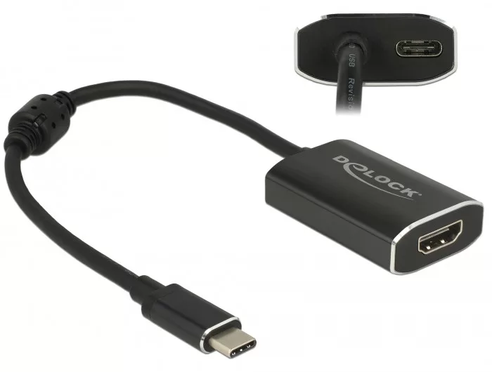 Ez a Delock adapter lehetővé teszi, hogy HDMI-monitort csatlakoztasson egy USB-C csatolóval és DisplayPort váltakozó mód támogatással rendelkező számítógéphez. Ennek köszönhetően az adapter különböző számítógépekhez, például Macbookhoz, Chromebookhoz stb. csatlakoztatható. Ezenkívül az adapter Thunderbolt 3 csatolóval is működik. Az adapteren egy USB Type-C tápfeszültségport található. Ez lehetővé teszi, hogy a laptop töltődjön, míg az adapter használatban van.