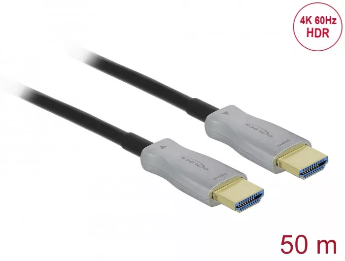 Ezzel a Delock kábellel HDMI csatlakozófelülettel rendelkező eszközöket például monitorokat vagy tévéket csatlakoztathat személyi számítógéphez vagy laptophoz. Ez az aktív optikai kábel különösen vékony, és hosszabb távon is veszteségmentesen tud jeleket továbbítani.