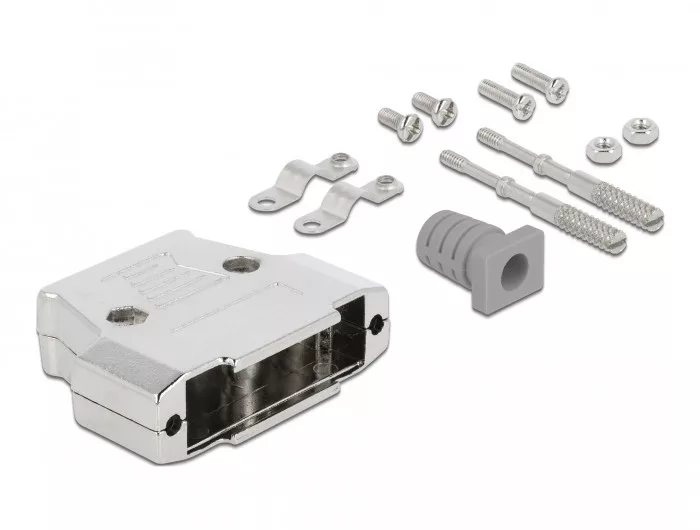 Ez a Delock fém ház használható D-Sub 25 csatlakozókhoz, hogy megvédje azokat kosztól és sérüléstől. Kábel kapcsok és feszülést csökkentők segítik a kábel biztonságát.