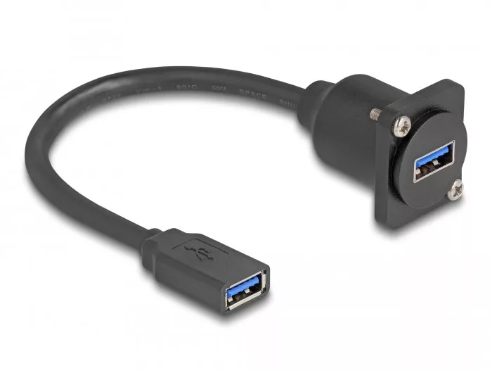 Leírás Ez a Delock kábel használható installáláskor például egy panelbe vagy D-típusú nyílással rendelkező házba. Használható még különböző A-típusú USB kapcsolattal rendelkező eszközök összekötésére. Műszaki adatok Csatlakozó: 1 x USB 5 Gbps A-típusú hüvely 1 x USB 5 Gbps A-típusú hüvely Akár 5 Gbps sebességű adatátvitel 1:1 csatlakoztatás Kábel vastagsága: 28 AWG adatvezeték 24 AWG tápvezeték D-típusú portokhoz 24 x 19 mm Panel kivágás (átmérő): kb. 24 mm Két felszerelő lyuk a szorító csavaroknak Kábelátmérő: kb. 6 mm Hosszúság a csatlakozóval együtt: kb. 20 cm Anyaga: PVC Szín: fekete Rendszerkövetelmények Egy szabad USB A-típusú-csatlakozó A csomag tartalma D-típusú kábel Csomag Zárható műanyag tasak