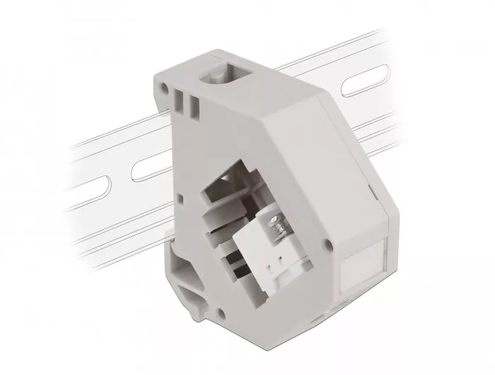 Ez a Delock adapter tartalmaz egy megfelelő Keystone modult egy IEC anyával, amely használható antenna kábelek csatlakoztatására. Az időszaki blokkoló fölött van egy rácsavarozható fém perec, amely feszültségmentesítőként használható az érintkező kábelhez. DIN sín rögzítés Az adapter csatlakoztatható egy 35 mm széles DIN sínre. Továbbá, az adapter rendelkezik egy kis jelző mezővel, amelyet egyenként jelölhetünk vagy különböző szimbólumokkal láthatunk el.