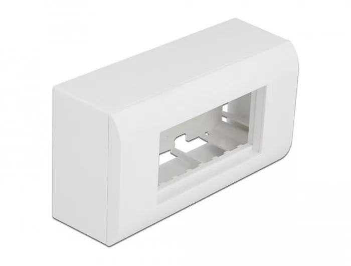 Ez a Delock felületre rögzített keret használható Easy 45 modulok falra rögzítésére. A keret ellenálló műanyagból készült, és így optimális védelmet biztosít az elektromos installációnak. Egy kábelbemenet lehetséges az oldalfalon és hátoldalon. Easy 45 kapcsolatok A Easy 45 egy változtatható moduláris rendszer mely lehetővé teszi az összetevők űgy mint csatlakoztatók, HDMI vagy USB kapcsolatok igény szerinti hozzáadását. A Easy 45 modulok standardizáltak és beépíthetők különböző modultartókba vagy kábelcsatornákba. A Easy 45 kapcsolódási felületet biztosít elektromos, hálózati és rendszer beépítések, valamint számos perifériás eszköz, úgy mint TV, monitor, nyomtató, laptop stb. között.