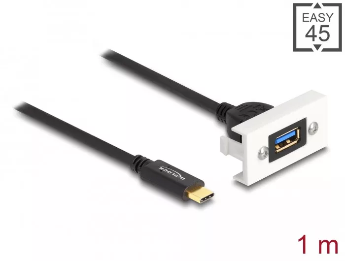 Leírás Ezt a Delock Easy 45 modult úgy tervezték, hogy egy USB Type-A csatlakozót biztosítson. Az egyszerű bepattintható mechanizmus biztosítja, hogy a burkolat szilárdan a helyén legyen, és szükség esetén könnyen és szerszám nélkül cserélhető. Könnyű 45 csatlakoztatás Az Easy 45 egy változtatható, moduláris rendszer, amely lehetővé teszi olyan komponensek hozzáadását, mint az aljzatok, HDMI vagy USB csatlakozások az Ön igényei szerint. Az Easy 45 modulok szabványosak és különféle modultartókba vagy kábelcsatornákba szerelhetők. Az Easy 45 interfészt épít az elektromos, hálózati és rendszertelepítés, valamint számos perifériaeszköz, például TV, monitorok, nyomtatók, laptopok és még sok más között. Leírás Csatlakozók: 1 x SuperSpeed ??USB 10 Gbps (USB 3.2 Gen 2) USB Type-C csatlakozó > 1 x SuperSpeed ??USB 10 Gbps (USB 3.2 Gen 2) Type-A csatlakozó Gazda = USB Type-C ; Eszköz = USB Type-A Kábel átmérő: 30 AWG adatvonal 22 AWG tápvezeték Kimeneti áram: 3 A-ig Kábel átmérője: kb. 4,5 mm Adatátviteli sebesség akár SuperSpeed ??USB 10 Gbps-ig Hossz csatlakozók: kb. 1 m Anyaga: PC műanyag Alkalmas Delock Easy 45 modultartóhoz Alkalmas 45 mm-es kábelcsatornához, minimális mélység 45 mm Modul mérete: 22,5 x 45 mm Méretek (HxSzxM): kb. 22,5 x 45,0 x 38,5 mm Szín: fehér Rendszerkövetelmények Egy szabad Delock Easy 45 modulport A csomag tartalma Easy 45 modul Csomag Cipzáras poli táska