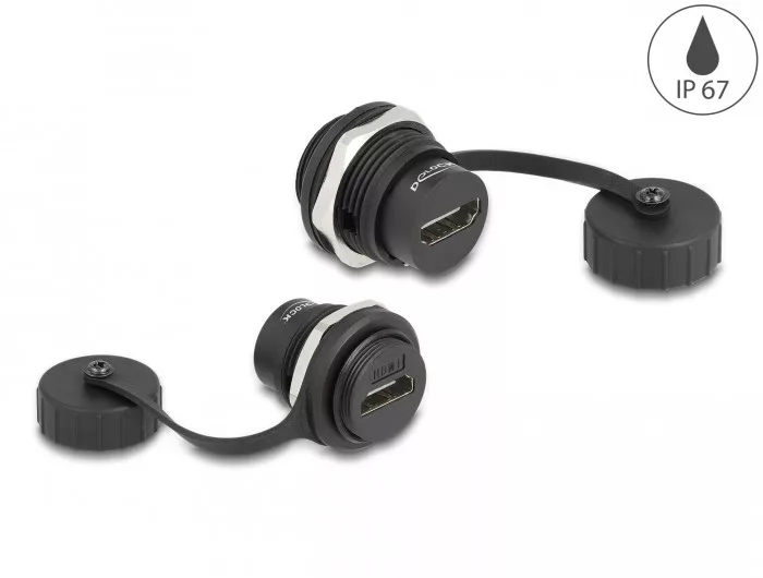 Ez a Delock HDMI beépített csatlakozó használható kapcsolószekrényben vagy elosztó házban, hogy két HDMI plugot kössön össze.