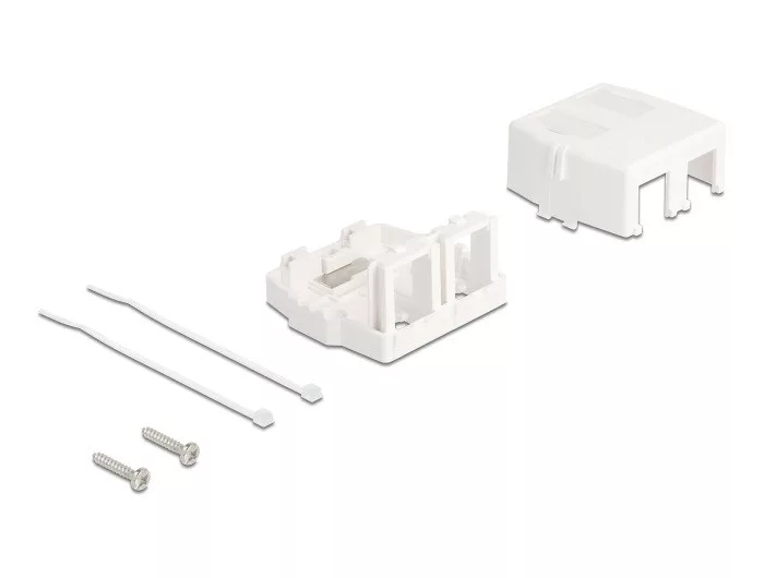 Leírás Ez a Delock üres doboz elosztó keretként használható a falon vagy kapcsolószekrényekben. Szabványos méretének köszönhetően két Keystone modul egyszerű rögzítésére használható. Biztonságos rögzítés Egy beépített mágnes lehetővé teszi, hogy a dobozt fém felületre illeszthető legyen. Emellett a doboz falra szerelhető csavarokkal is. Műszaki adatok 2 Keystone port, 19,2 x 14,9 mm Kábelelvezetés: 180 Integrált névlemez Mágneses talp Műanyag ház Falra szerelhető a házban Szín: fehér Méretek (HxSzxM): kb. 57,3 x 54,5 x 32,4 mm A csomag tartalma Keystone falon kívüli doboz 2 x kábelkötöző 2 x csavar Csomag Zárható műanyag tasak