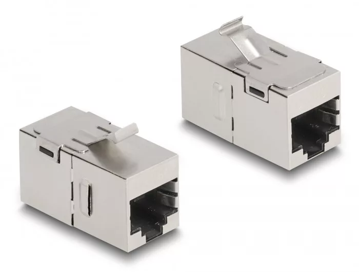 Leírás Ez a Delock modul hálózati kábelek kibővítésére használható. Szabványos méretének köszönhetően egyszerű rögzítésre használható (pl. Keystone patch panelhez, védőlemezhez vagy felületre szerelhető dobozhoz). Műszaki adatok Csatlakozó: 1 x RJ45 hüvely 1 x RJ45 hüvely Cat.6A specifikáció Árnyékolt (STP) Arany bevonatú érintkezők 19,2 x 14,9 mm-es Keystone csatlakozóportokhoz Anyaga: fém Méretek (HxSzxM): kb. 30,0 x 20,3 x 16,5 mm Rendszerkövetelmények Egy szabad RJ45-csatlakozódugó A csomag tartalma Keystone modul Csomag Zárható műanyag tasak