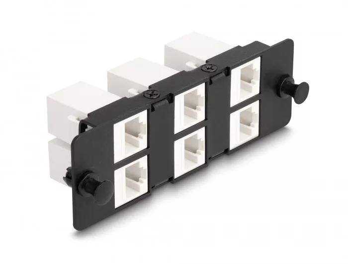 Ez a Delock panel felszerelt 6 Keystone modullal és alkalmas 19 inches HD Delock 66924 típusú patch panel installálásához. A Keystone modulok használhatók hálózati kötelek csatlakoztatására. -Csatlakozó: 6 x RJ45 hüvely 6 x RJ45 hüvely -19 üvegszálas HD (nagy sűrűségű) patch panelbe szerelhető, 1U -6 port Keystone modulokkal -Cat.6A specifikáció -Működési hőmérséklet: -40 C ~ 85 C -Anyaga: fém / műanyag -Szín: fehér / fekete -Méretek (HxSzxM): kb. 111 x 35 x 33 mm -19 HD patch panel 66924 -Keystone adapter panel
