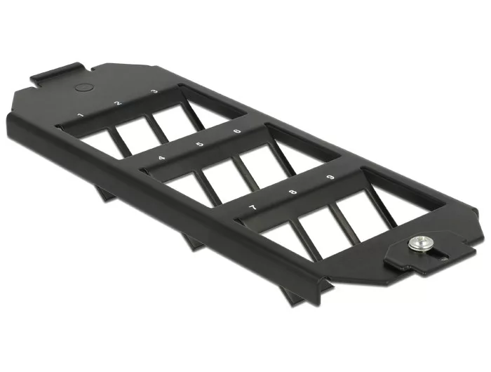Ez a Delock által gyártott Keystone rögzítés padlótartályokba szerelhető. Szabványosított méreteivel kilenc Keystone modul egyszerű pattintható rögzítésére alkalmas.