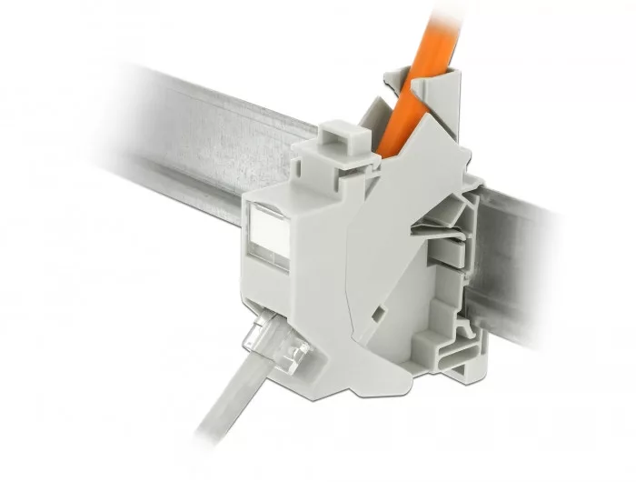 Ez a Delock Keystone modultartó DIN-sínekhez rögzíthető. Tömör szerkezetének köszönhetően egy Keystone 86179-es modult könnyen bekattintva rögzíthetjük.