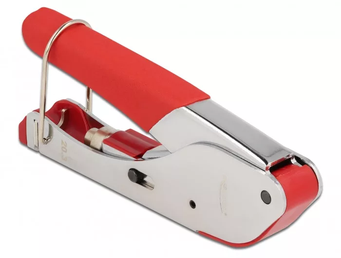 A Delock ez a praktikus krimpelő eszköze alkalmas az F-tömörítésű dugók krimpelésére, és megbízhatóan csatlakoztatja a kábelt a dugós csatlakozóhoz.
