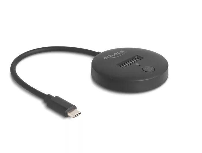 Leírás Ez a Delock M.2 dokkoló állomás lehetővé teszi az installálását egy M.2 PCIe NVMe SSD vagy M.2 SATA SSD-nek és összekapcsolható egy USB felületen keresztül egy számítógéppel vagy laptoppal. Kombinált dokkolóállomás A nagy előnye ennek a Delock M.2 dokkoló állomásnak az, hogy mind SATA és PCIe (NVMe) M.2 SSD-k csatlakoztathatók a dokkoló állomáshoz. A memóriát a lapkakészlet automatikusan felismeri, majd használható. Ideális teszteszköz Az M.2 SSD egyszerűen hozzá van kapcsolva a csatlakoztató nyílásba és összekötődik az eszközzel a USB-C csatlakozási felületen keresztül. Így a dokkoló állomás a legalkalmasabb teszt eszközként. Műszaki adatok Csatlakozó: 1 x USB 10 Gbps USB Type-C dugó 1 x M.2 M-kulcs nyílás Lapkakészlet: Realtek RTL9210B M.2 modulok használatát támogatja SATA vagy PCIe (NVMe) alapú M- vagy B+M-kulccsal Támogatja a NVM Express (NVMe) használatát Rendszerindításra alkalmas Akár 10 Gbps sebességű adatátvitel LED jelzőfény a tápfeszültség és elérés jelzéséhez 1 x Főkapcsoló Kábelhosszúság csatlakozó nélkül: kb. 15 cm Méretek: átmérő kb. 60 mm, magasság kb. 19 mm Hot Plug, Plug & Play Rendszerkövetelmények Android 11.0 vagy újabb Chrome OS Linux Kernel 5.15 vagy újabb Mac OS 12.4 vagy újabb Windows 10/10-64/11 iPad Air (4. generáció) vagy újabb iPad Pro (3. generáció) vagy újabb Egy szabad USB Type-C porttal vagy egy szabad Thunderbolt 3 porttal rendelkező eszköz vagy Thunderbolt 4 A csomag tartalma M.2 dokkoló állomás Használati utasítás Csomag Retail Box