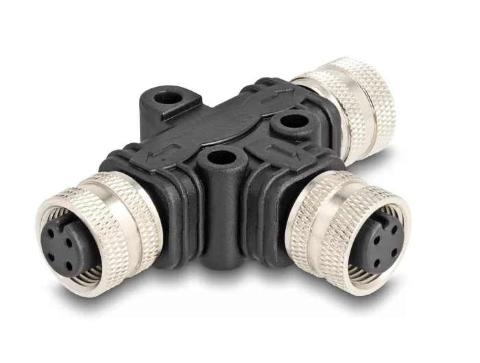 Leírás Ez a Delock ipari T-elosztó használható különböző elemek kapcsolatához M12 konnektorokkal például egy kontroll vagy automatizáló gépezethez. Műszaki adatok Csatlakozó: 1 x M12 A kódolt 4 tűs hüvely 2 x M12 A kódolt 4 tűs hüvely Burkolat anyaga: PVC Arany bevonatú érintkezők Működési feszültség: max. 250 V Árammennyiség: max. 4 A Működési hőmérséklet: -25 C ~ 85 C Védelmi besorolás: IP67 Csavarmenet méret: M12 x 1,0 mm Szín: fekete Méretek (HxSzxM): kb. 51 x 43 x 13 mm Rendszerkövetelmények Három szabad M12-csatlakozódugó A csomag tartalma T-elosztó Csomag Zárható műanyag tasak