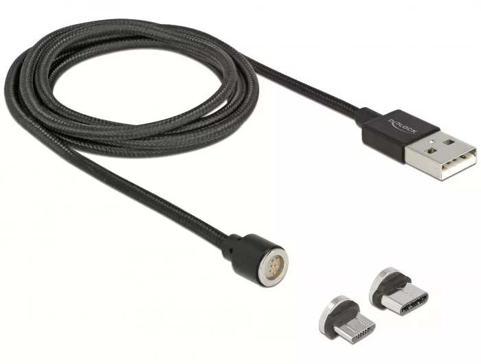 Ez a Delock USB adat- és töltokábel kiemelkedik mágneses technológiájával és lehetové teszi a könnyu és gyors kapcsolatot és szétkapcsolódást a készülék és az áramforrás vagy egy számítógép között. A mellékelt két mágnes adapter egyikének használatával, különbözo mobil eszközök, tabletek stb. tölthetok vagy adatok közvetíthetok akár B típusú Micro USB vagy USB Type-C interfésszel. Továbbá a kábel lehetové teszi a gyorstöltést például modern USB töltokkel. Az adaptereket úgy tervezték, hogy a készülék portján belül maradjanak. Így elkerülheti az interfész kopását, és porvédelmet is nyújt. Az USB töltokábel azonnal összeköthetó a készülékkel, kerek, mágneses csatlakozója segítségével. A kábel a robusztus textil árnyékolás és a mindkét kábelvégén lévo fém ház miatt, nagyon eros és tartós.