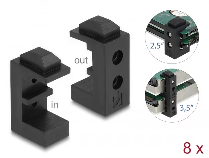 Ez a Delock merevlemez tartó a merevlemezek biztos foglalatát nyújtja. Két 2,5 colos merevlemez vagy egy 3,5 colos merevlemez helyezhető be a négy foglalatba. Biztonságosan kötegelhető A tartók ötletes kialakításának köszönhetően az egyes merevlemezeket könnyen és biztonságosan kötegelhetjük egymásra. A tartórészek magassága szintén elég helyet biztosít a merevlemezek szellőzésére. Lengéscsillapító anyag A műanyag matéria speciálisan arra lettek kiválasztva, hogy a rezgést és árambehatást elnyeljék. Ez problémamentes használatot biztosít.