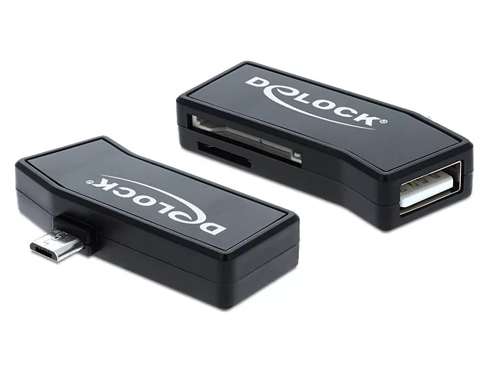 Ez a Delock gyártmányú kártyaolvasó lehetővé teszi, hogy memóriakártyákról olvasson adatokat, illetve memóriakártyákra írjon az okostelefonja vagy táblagépe Micro USB OTG-portján keresztül. Ezenkívül egy A típusú USB-csatlakozóhüvely is rendelkezésére áll, amelynek segítségével többek között merevlemezeket, pendrive-okat csatlakoztathat szabványos, A típusú USB-csatlakozódugóval az OTG-támogatással működő mobiltelefonjához, okostelefonjához vagy táblagépéhez.