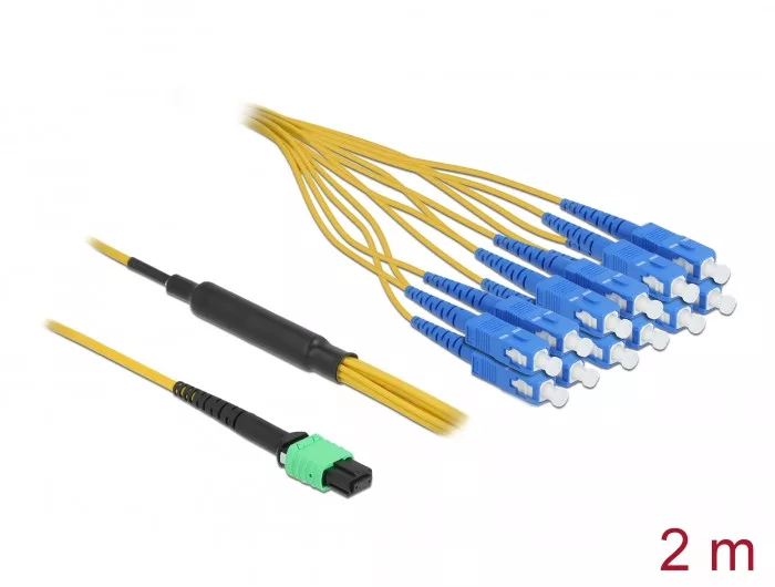 Ez a Delock MPO - SC ventilátor kimeneti kábel rendelkezik egy MPO/UPC anya csatlakozóval az egyik oldalon és egy 12 db.-os SC/ UPC Simplex apa csatlakozó a másik oldalon. Ez lehetővé teszi az optikai szálkábel átalakítását egyéb hálózati eszközökre úgy, mint csatlakozókra.