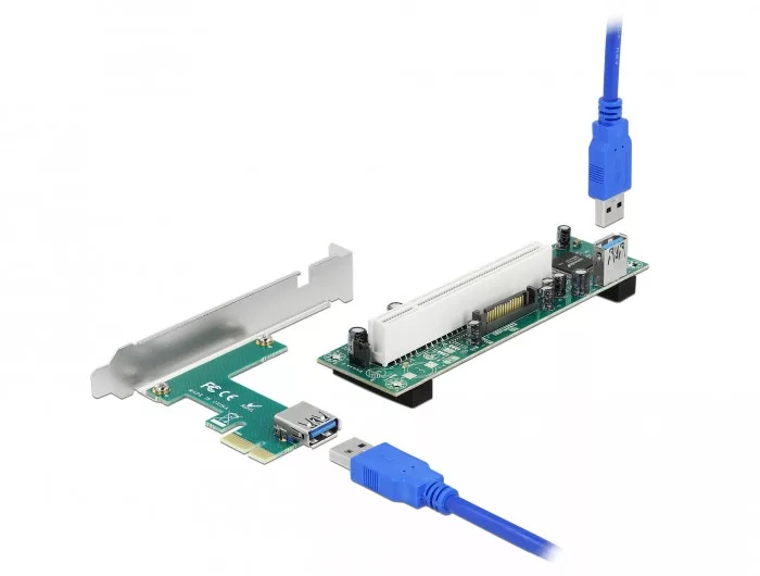 A Delock PCI Express bővítőkártya lehetővé teszi egy PCI kártya csatlakoztatását egy PCI Express interfészen keresztül. A csatlakozó hátsó nyílás rése lehetővé tesz egy külső kapcsolatot például kábelek és a beépített PCI kártya között a számítógépházban.
