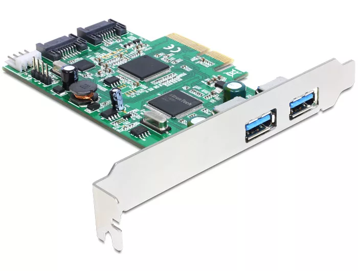 Ez a Delock PCI Express kártya kibővíti a személyi számítógépet két külső USB 3.0 porttal és két belső SATA porttal. Igény szerint különböző eszközöket, például SSD-ket, merevlemezeket, DVD-meghajtókat stb. csatlakoztathat a kártyához.