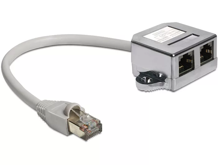 Ezzel a Delock Y-adapterrel lehetővé válik, hogy megduplázhasson egy fixen szerelt hálózati csatlakozást. Így egy kábelt használhat két egyszerre működő 10/100 Ethernet csatlakozáshoz. Az alkalmazáshoz két adapter szükséges, melyeket a hálózati foglalat kábeles részéhez kell csatlakozatni, vagy a patch penelhez. így két anya portot kaphat egy helyett.