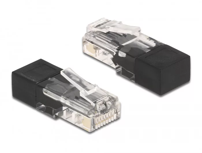 Ez a Delock RJ45 kapcsoló felszerelt egy 60 ohm-os rezisztorral és mérések, ellenőrzések és irányító rendszerekben használható.