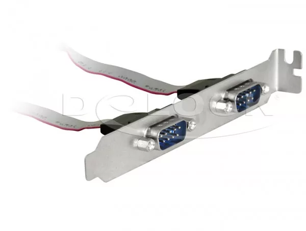Ez a Delock Slot konzol beilleszthető a PC-n lévő szabad slot-ba és lehetővé teszi 2db belső COM port kivezetését, hogy csatlakoztassunk 2db külső soros eszközt.