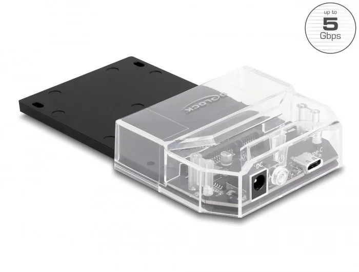 Leírás Ez a Delock Dokkoló Állomás lehetővé teszi egy 2.5 -os SATA merevlemez vagy SSD külső csatlakoztatását az USB interfészen keresztül. Ez a megoldás nem igényel külső házat, mivel a meghajtó közvetlenül csatlakoztatható a dokkolóegységhez. Jó hűtés Az alja áll egy stabil metál tartóból hűtő úszókkal. Ezek passzív hűtést biztosítanak a beépített memória számára. Műszaki adatok Csatlakozó: 1 x SuperSpeed USB 5 Gbps (USB 3.2 Gen 1) USB Type-C hüvely 1 x 22 érintkezős SATA 6 Gb/s hüvely 1 x DC aljzat (opcionális a tápellátáshoz) Lapkakészlet: Asmedia ASM225 Funkció gomb: 1 x Főkapcsoló 2.5 -es SATA HDD / SSD meghajtóhoz való Legfeljebb 15 mm magasságú HDD Valamennyi SATA meghajtóhoz alkalmas, legfeljebb SATA 6 Gb/s adatátviteli sebességig Akár 5 Gbps sebességű adatátvitel LED jelzőfény a tápfeszültség és elérés jelzéséhez Támogatja a S.M.A.R.T. használatát Támogatja a TRIM használatát Támogatja a UASP használatát Plug & Play Rendszerindításra alkalmas Szín: fekete Méretek (HxSzxM): kb. 138 x 80 x 23 mm Rendszerkövetelmények Android 10.0 vagy újabb Chrome OS Linux Kernel 5.11 vagy újabb Mac OS 11.2.3 vagy újabb Windows 8.1/8.1-64/10/10-64/11 PC vagy notebook számítógép szabad USB A-típusú-csatlakozóval A csomag tartalma Dokkolóállomás Kábel USB-C csatlakozódugóval és USB A-típusú csatlakozódugóval, hossza kb. 80 cm Csavarok Használati utasítás Csomag Retail Box