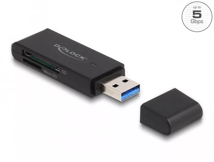 Leírás Ez a Delock kártyaolvasó két memóriakártya-nyílással rendelkezik, és lehetővé teszi különböző SD, MMC és Micro SD memóriakártyák olvasását és írását. A kártyaolvasó az USB Type-A interfészen keresztül PC-hez vagy laptophoz csatlakoztatható . Leírás Csatlakozók: 1 x SuperSpeed ??USB 5 Gbps (USB 3.2 Gen 1) Type-A dugó > 1 x SD / MMC slot 1 x Micro SD slot Lapkakészlet: Realtek RTS5306 Adatátviteli sebesség akár 5 Gbps Két memóriakártya csatlakoztatható egyidejű használat 1 x LED jelző Bootolható Plug & Play Szín: fekete Méretek (HxSzxH): kb. 70 x 21 x 9 mm A következő memóriakártyákat támogatja: Slot 1 SD, SD3.0 UHS-I, SD4.0 UHS-II, SD High Capacity (SDHC), SD High Speed, SDXC, Turbo-SD, Turbo Mini SD *, Mini SD*, MMC-I, MMC-II, MMC plus, MMC Dual Voltage, RS-MMC*, RS-MMC Dual Voltage*, RS-MMC4.0* 2. bővítőhely Micro SD, Micro SD3.0 UHS-I, Micro SD4.0 UHS-II, Micro SDHC, Micro SDXC, T-Flash, MMC Mobile, MMC micro *Adapter szükséges Rendszerkövetelmények Chrome OS Linux Kernel 5.11 vagy újabb Mac OS 11.2.3 vagy újabb Windows 8.1/8.1-64/10/10-64/11 PC vagy laptop ingyenes USB Type-A porttal A csomag tartalma USB kártyaolvasó Felhasználói kézikönyv Csomag Kiskereskedelmi doboz