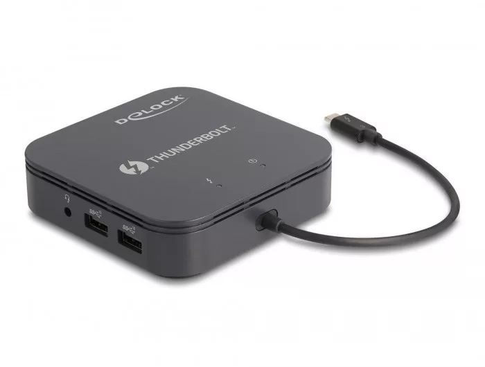 Leírás Ez a Delock Thunderbolt 3 mini dokkoló állomás összeköthető egy számítógéppel, melynek van Thunderbolt 3 portja és így számtalan kapcsolódási felületet biztosít. A DisplayPort kimenet lehetővé teszi egy 8K lejátszás kapcsolatát, a HDMI kimenet egy 4K lejátszás kapcsolatát, a két monitor 4K felbontással működtethető párhuzamosan. Két beépített USB port biztosítja a perifériák használatát, a fejhallgatóhoz és a Gigabit hálózathoz történő csatlakozást. Certified Multi-Stream Transport (MST) A termék egy MST hub és a DisplayPort kibővített asztali konfigurációját támogatja. Ez teszi lehetővé több monitor összekapcsolását egyetlen nagy megjelenítéssé. Így a dokkoló állomás maximum 1080 p felbontást támogat kijelzőnként. Az USB tápellátást (USB PD 3.0) akár 60 wattig is támogatja A dokkolóállomás rendelkezik egy USB Type-C tápellátási porttal a laptop vagy a tablet áramellátásának csatlakoztatásához. Plug & Play Eza z eszköz egyszerűen csatlakoztatható, és azonnal használható. Nincs szükség extra tápellátásra a dokkoló állomás használatához. Kicsi tartós segítő Kis mérete és biztonságos borítása miatt ez a Delock dokkolóállomás különösen alkalmas utazásra. Egyszerűen becsomagolható a laptop táskába vagy tablet tartójába és szükség esetén használható. Műszaki adatok Csatlakozó: 1 x Thunderbolt 3 dugó 2 x USB 10 Gbps A-típusú hüvely 1 x DisplayPort hüvely 1 x HDMI-A hüvely 1 x Gigabit LAN 10/100/1000 Mbps RJ45 hüvely 1 x 3,5 mm-es, 4 tűs fejhallgató-aljzat 1 x USB Type-C hüvely (tápellátás) Lapkakészlet: Intel Titan Ridge Maximális felbontás (a rendszertől és csatlakoztatott hardvertől függően) DisplayPort akár 7680 x 4320 @ 30 Hz HDMI akár 3840 x 2160 @ 60 Hz DisplayPort + HDMI akár 3840 x 2160 @ 60 Hz Hang- és videojelek továbbítása Funkciók: Tükrözött vagy Kiterjesztett Támogatja a HDCP 2.2 használatát Támogatja a HDR használatát Fülhallgató csatlakozó: automatikus beazonosítás OMTP vagy CTIA sztenderd Plug & Play Kimeneti teljesítmény a host-hoz: max. 60 W 2 x LED kijelző Szín: fekete Kábelhosszúság csatlakozó nélkül: kb. 20 cm Méretek (HxSzxM): kb. 100 x 100 x 25 mm Rendszerkövetelmények Mac OS 11.2.3 vagy újabb Windows 10/10-64/11 Asztali vagy hordozható számítógép szabad Thunderbolt 3 vagy Thunderbolt 4 porttal A csomag tartalma Thunderbolt 3 dokkolóállomás Használati utasítás Csomag Retail Box