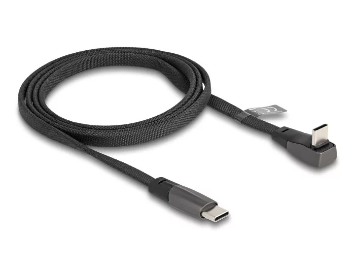 Delock USB 2.0 Laposkábel USB Type-C apa - USB Type-C apa USB Type-C apa hajlított PD 3.0 60 W 1 m fekete (DL-80751)