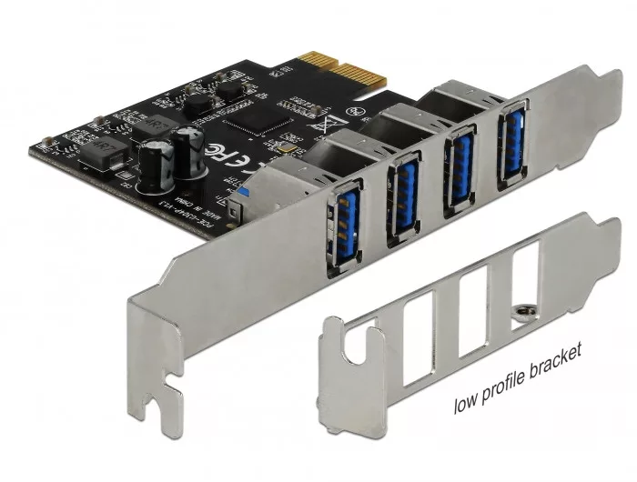 A Delock PCI Express-kártya négy külso, USB 3.0-s porttal bovíti ki a számítógépét. Igény szerint USB-vel kompatibilis különféle eszközöket, például dokkolóállomásokat, kártyaolvasókat, külso házakat stb. csatlakoztathat a kártyához.