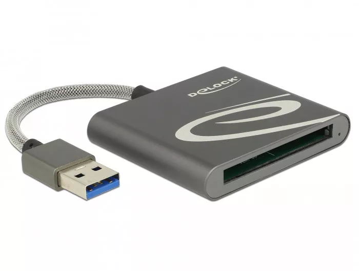 A Delock kártyaolvasó használható CFast memóriakártyák olvasásához és írásához. A kártyaolvasó asztali vagy hordozható számítógéphez csatlakoztatható az A-típusú USB-csatolón keresztül.