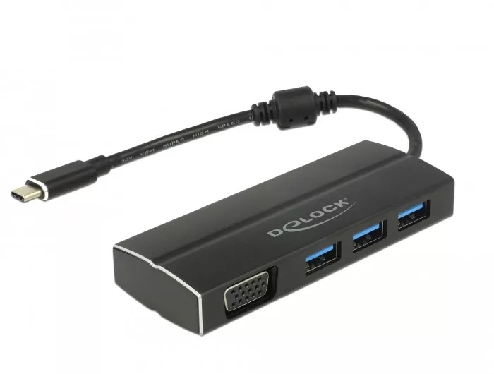 Ez a Delock adapter lehetové teszi a csatlakozást egy USB-C csatolóval és DisplayPort váltakozó mód támogatással rendelkezo számítógéphez. A termék kibovíti a rendszert 3 db. 3.0-s A típusú USB és egy VGA aljzattal.