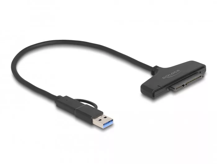 Leírás Ez a Delock átalakító USB-C vagy egy A-típusú USB csatolón keresztül asztali vagy hordozható számítógéphez csatlakoztatható. Ennek köszönhetően egy 2.5 SATA HDD vagy SSD használható egy 22 tűs SATA-csatolóval. Fokozott összeköttetés A különleges kialakítású adapter folytán a Delock átalakító gyorsan és könnyen csatlakoztatható az A-típusú USB foglalatba. Így, könnyen összeköthető új eszközökkel a USB Type-C anyával és idősebb eszközökkel is, melyeknek csak egy A-típusú konnektorja van. Az adapter közvetlenül a kábelen helyezkedik el és így nem veszíthető el. Műszaki adatok Csatlakozó: 1 x SuperSpeed USB 5 Gbps (USB 3.2 Gen 1) USB Type-C dugó 1 x 22 érintkezős SATA 6 Gb/s hüvely Adapter: 1 x SuperSpeed USB 5 Gbps (USB 3.2 Gen 1) USB Type-C hüvely 1 x SuperSpeed USB 5 Gbps (USB 3.2 Gen 1) A-típusú dugó Lapkakészlet: Asmedia ASM1153e 2.5 -es SATA HDD / SSD meghajtóhoz való Támogatja a SATA 1,5 Gb/s, SATA 3 Gb/s és SATA 6 Gb/s szabványt Akár 5 Gb/s sebességű adatátvitel Plug & Play Hosszúság a csatlakozóval együtt: kb. 30 cm Rendszerkövetelmények Android 11.0 vagy újabb Chrome OS Linux Kernel 5.13 vagy újabb Mac OS 12.2.1 vagy újabb Windows 8.1/8.1-64/10/10-64/11 iPad Air (4. generáció) vagy újabb iPad Pro (3. generáció) vagy újabb Surface Pro 7 Egy szabad USB Type-C porttal vagy egy szabad Thunderbolt 3 porttal rendelkező eszköz vagy Egy szabad USB A-típusú-csatlakozó A csomag tartalma Átalakító Védőfej Használati utasítás Csomag Retail Box